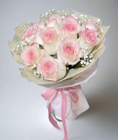 Capture the essence of love with our gorgeous bouquet of 12 Double Color Pink Roses adorned with delicate Baby’s Breath. This stunning Bouquet is perfect for expressions of love, or appreciation. Each rose whispers stories of love, while the baby’s breath adds to its charm and beauty. Ideal for every occasion, from birthdays to anniversaries, or just to brighten someone’s day.
